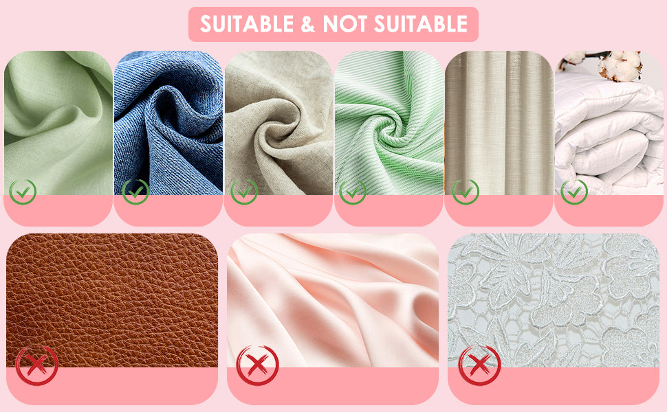 The Stitch Gun works best on durable fabrics like cotton, denim, polyester, linen, and wool, providing a secure and easy tagging experience. However, it’s not suitable for delicate materials such as silk, lace or leather, as the fine needles can cause damage or fail to attach properly.